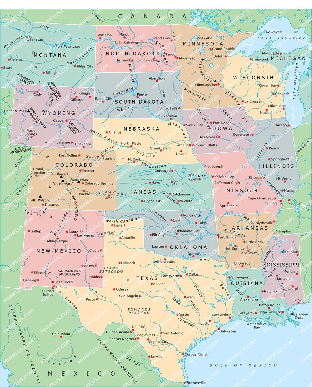 Central US map